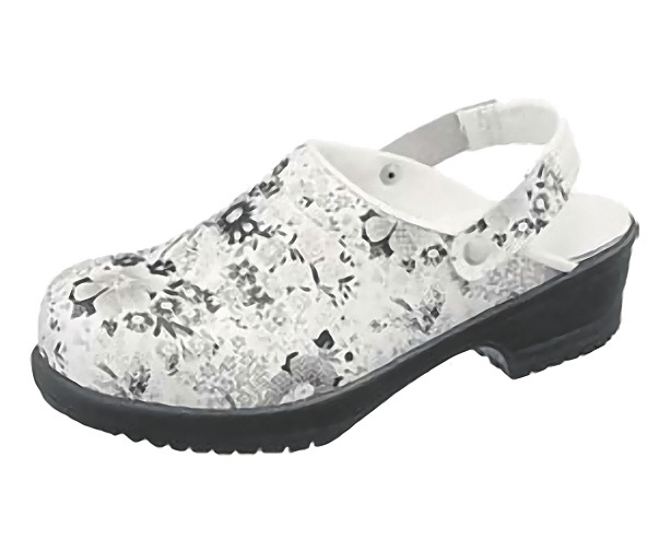 комфортабельные туфли-сабо, из натуральной кожи, белые с рисунком, с