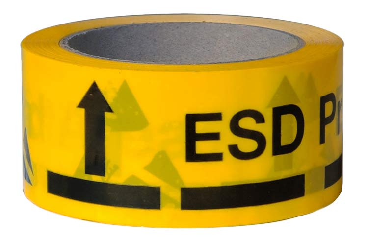 Клейкая лента желтого цвета с маркировкой ESD A-7418