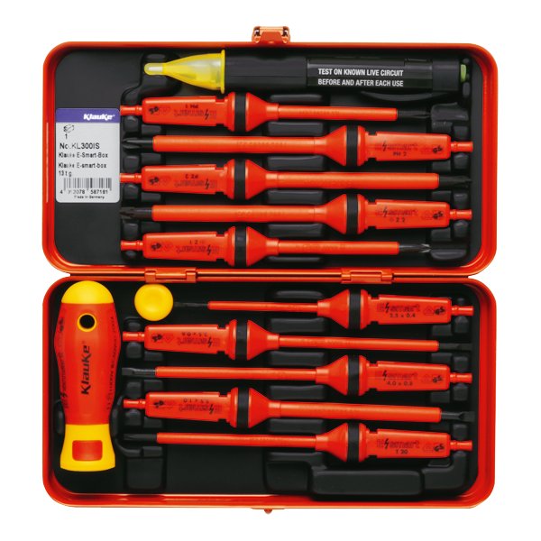 KL300IS Набор инструментов в электроизол. исполнении VDE до 1000В: рукоятка-держатель, 10 отверток-вставок, вращающийся упор, бесконтактный индикатор напряжения GT-12. Прямой шлиц: 2,5х0,4 / 3,0х0,5 / 3,5х0,6 / 4,0х0,8 / 5,5х1,0 Шлиц Philis: PH1 / PH2 Шлиц Pozidriv: PZ2 / TX 10 Шлиц Torx: TX 15 / TX 20 |
