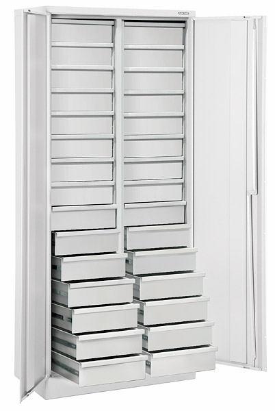 2000 комбинаций. Шкаф для хранения комплектующих имеет выдвижные ящики