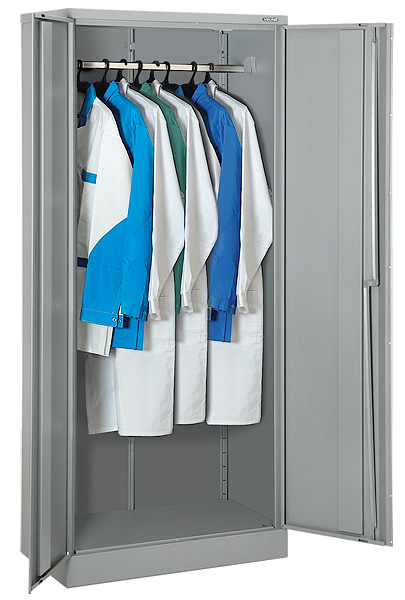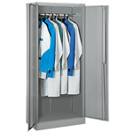 Металлический двухдверный шкаф. Два отделения под одежду. Замок типа CAM LOCK с тягами, секретность 2000 комбинаций.