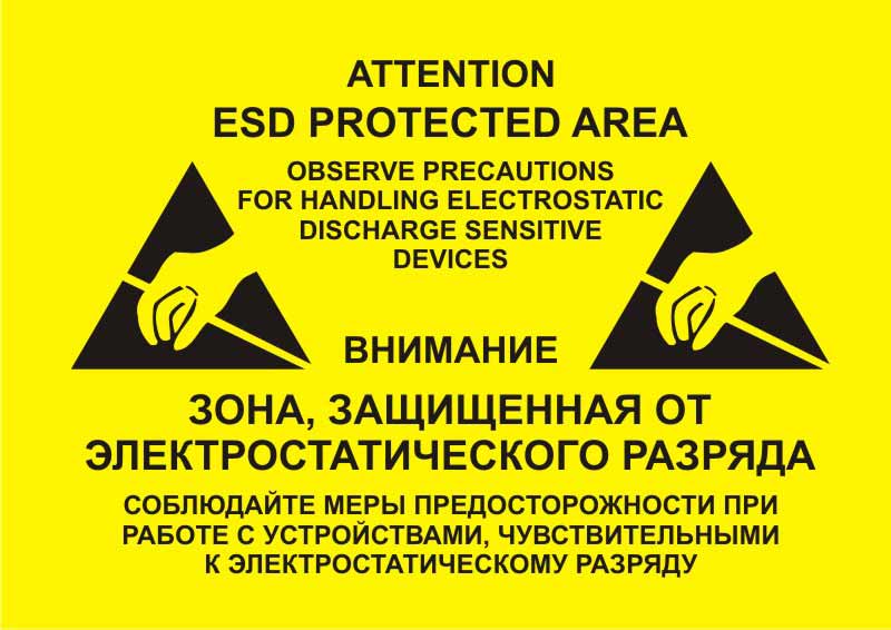 Знак с надписью ATTENTION! ESD PROTECTED AREA (ВНИМАНИЕ ЗОНА ЗАЩИЩЕННАЯ ОТ СТАТИЧЕСКОГО РАЗРЯДА)