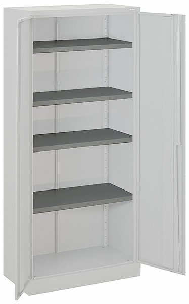 Металлический шкаф для документов, оснащенный двумя закрывающимися секциями, в каждой секции по 2 полки. Обе секции оснащены жалюзийными створками. Цветовые исполнения - темно-серый и светло-серый. Доступен только в общепромышленном исполнении. Габаритные размеры: 615х1700х400 мм. Максимальная нагрузка на каждую полку 50кг.