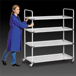 высоте полками и четырьмя поворотными колесами ø75 мм (ТТ-02, ТТ-03) или