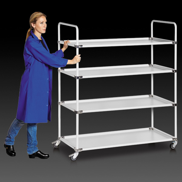 Для установки оборудования в рабочей зоне. В антистатическом исполнении снабжен ESD колесными опорами с механизмом фиксации.